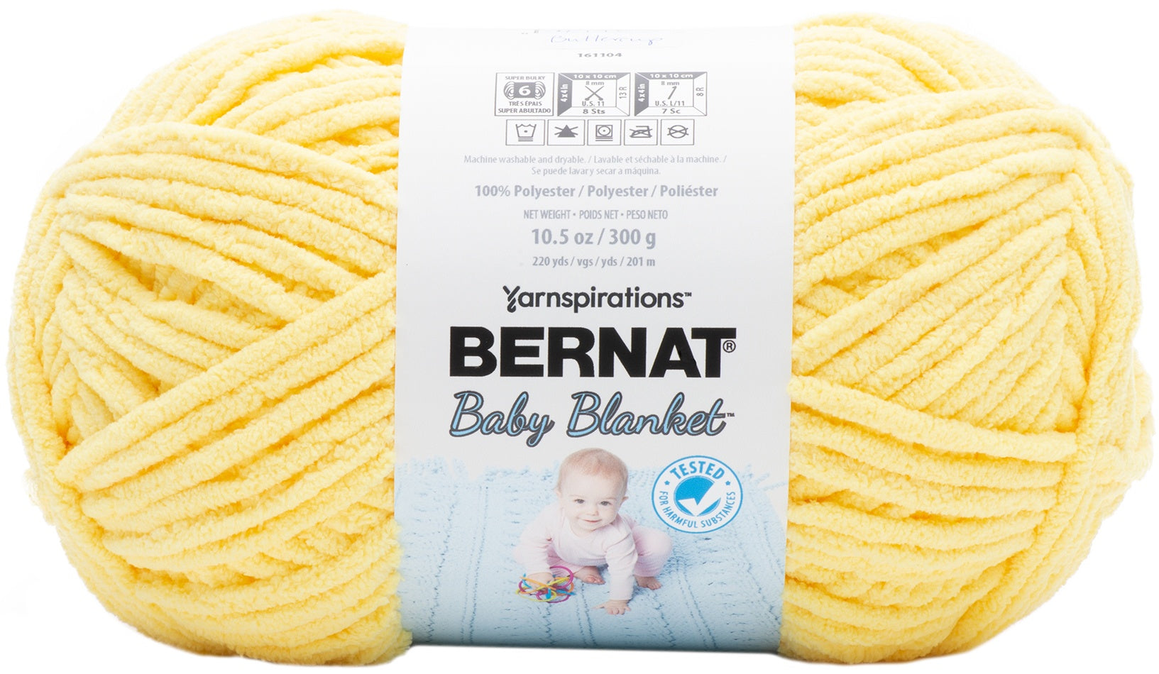 A luxuriously soft, chenille-style yarn that's perfect for baby blankets and garments. This machine washable and dryable yarn is the perfect versatile yarn for Baby. The big gauge makes projects fly by. Bernat Baby yarns are OEKO-TEX certified, and are tested for over 300 harmful substances and proven to be safe for your baby's sensitive skin. Make a project in every shade!